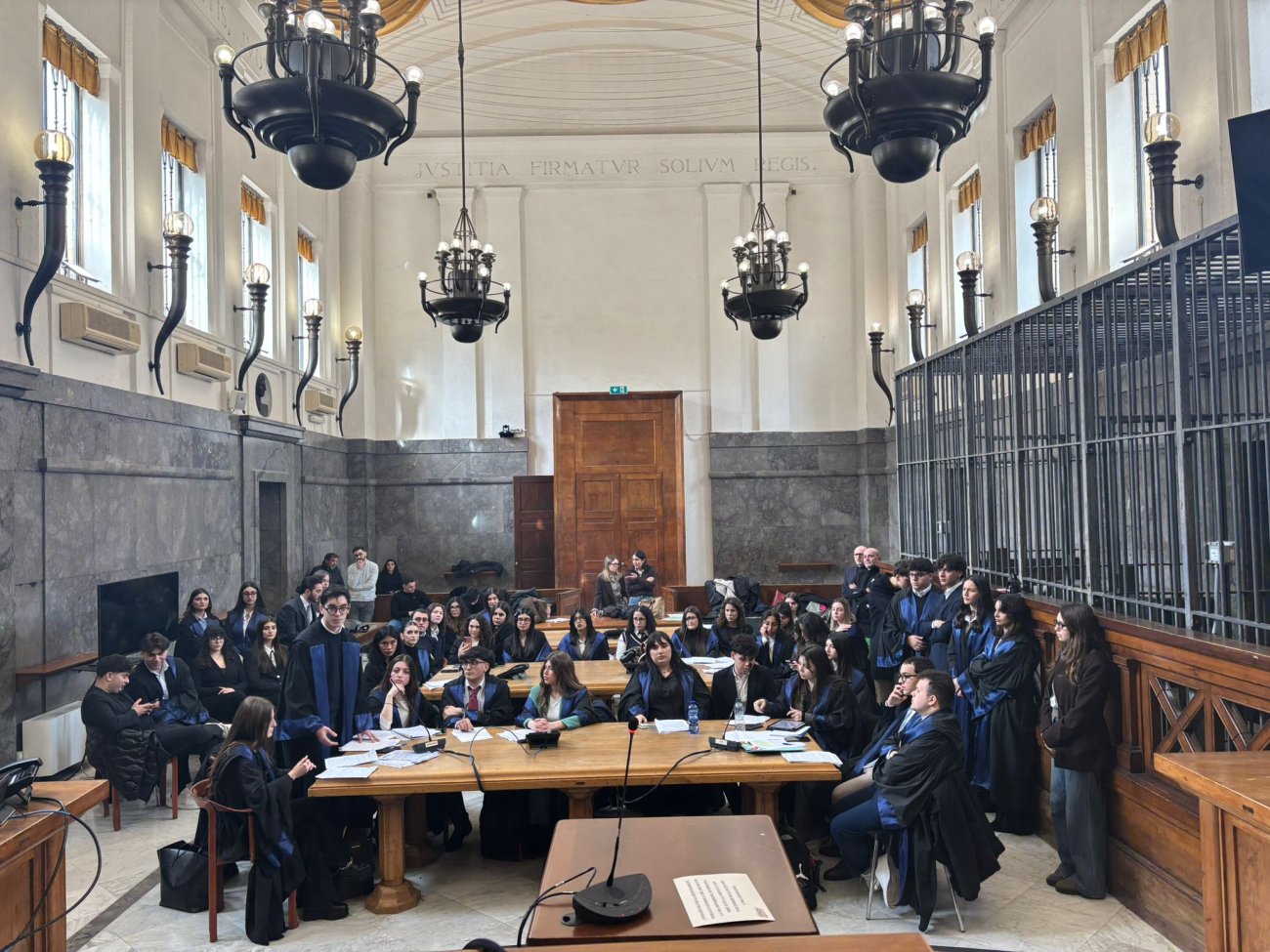 A conclusione della simulazione, venerdì 10 aprile 2026, alle ore 15.00, nell’Aula della Corte d’Assise, la “Corte” ha pronunciato la propria decisione, dandone lettura unitamente alle motivazioni. In particolare, è stata dichiarata l’illegittimità costituzionale dell’articolo 294, secondo comma, del codice civile, nella parte in cui non consente l’adozione da parte di più persone anche alle parti della stessa unione civile tra persone dello stesso sesso, limitatamente ai casi in cui l’adozione della persona maggiorenne sia finalizzata al riconoscimento giuridico di un rapporto affettivo stabile, duraturo e preesistente, caratterizzato da una relazione di tipo genitoriale già in atto, con il pieno consenso dell’adottando e in assenza di conflitti con la famiglia d’origine. Alla lettura della decisione è seguito un vivace dibattito tra tutti i presenti.